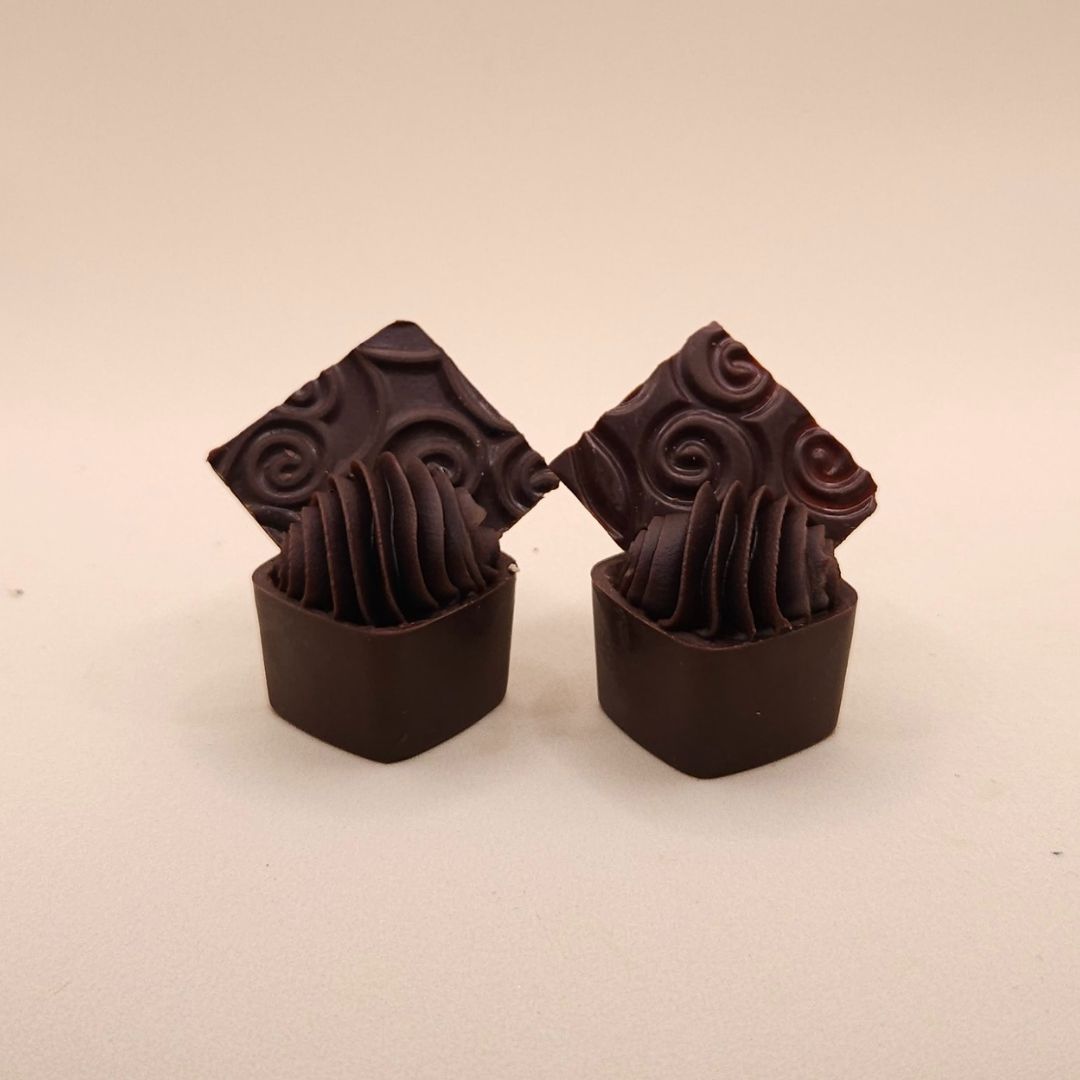 - Copinho de chocolate nobre preto que derrete na boca com recheio cremoso de chocolate ao leite. Finalizado com moeda de chocolate nobre.
