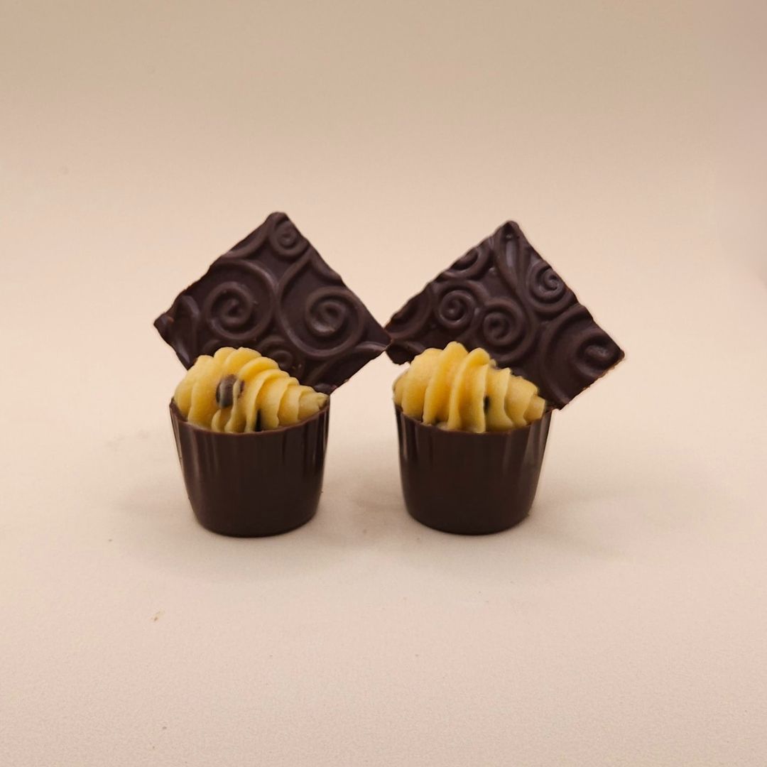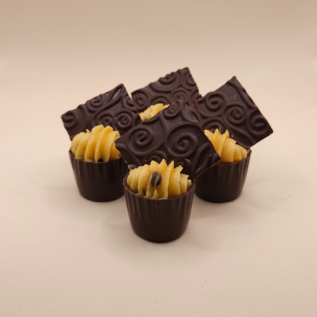 - Copinho de chocolate nobre e recheio mega cremoso feito com maracujá. Finalizado com moeda de chocolate nobre.