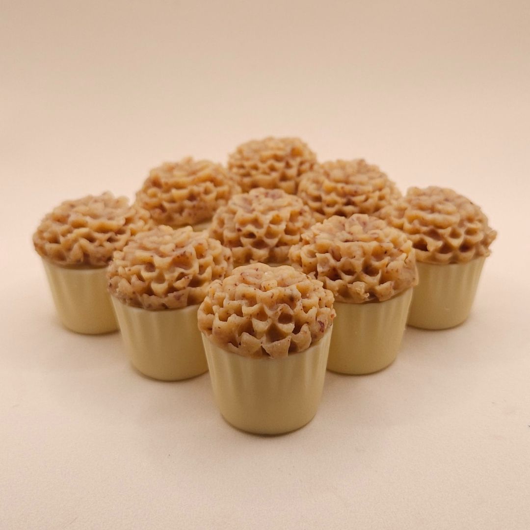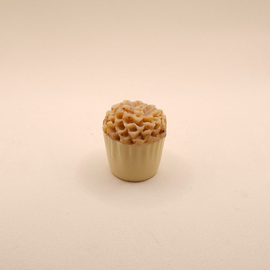 - Copinho de chocolate nobre branco que derrete na boca com recheio cremoso de brigadeiro branco. Finalizado com uma florzinha feita com amêndoas